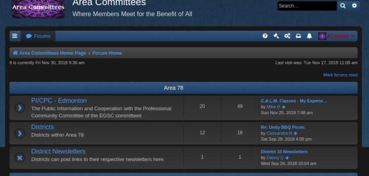 This site began trials in late 2016 as a WordPress.com blog.   It became an interactive site meant to aid service committees in their communications and planning. Perhaps overly broad in scope, its design was intended to maintain a consistent point of contact between outreach committees, the committee members themselves (forum), and those they interacted with. Use of this site was ever mindful of the spirit of anonymity, using only first names and last initial.